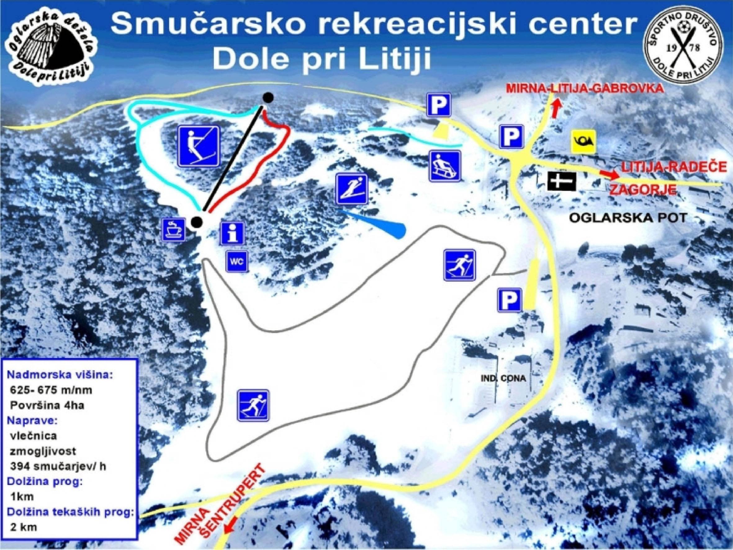 Dole Pri Litiji (500 km), Litija (26 km) Plaatsen bij het skigebied