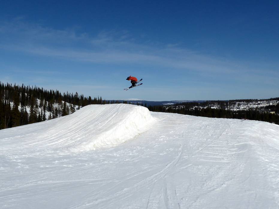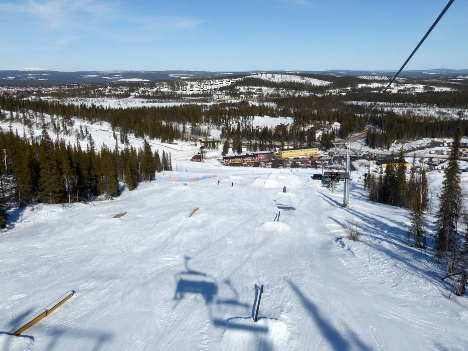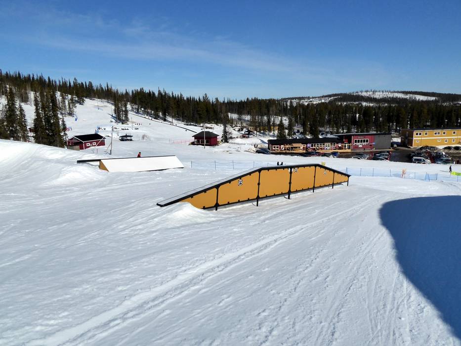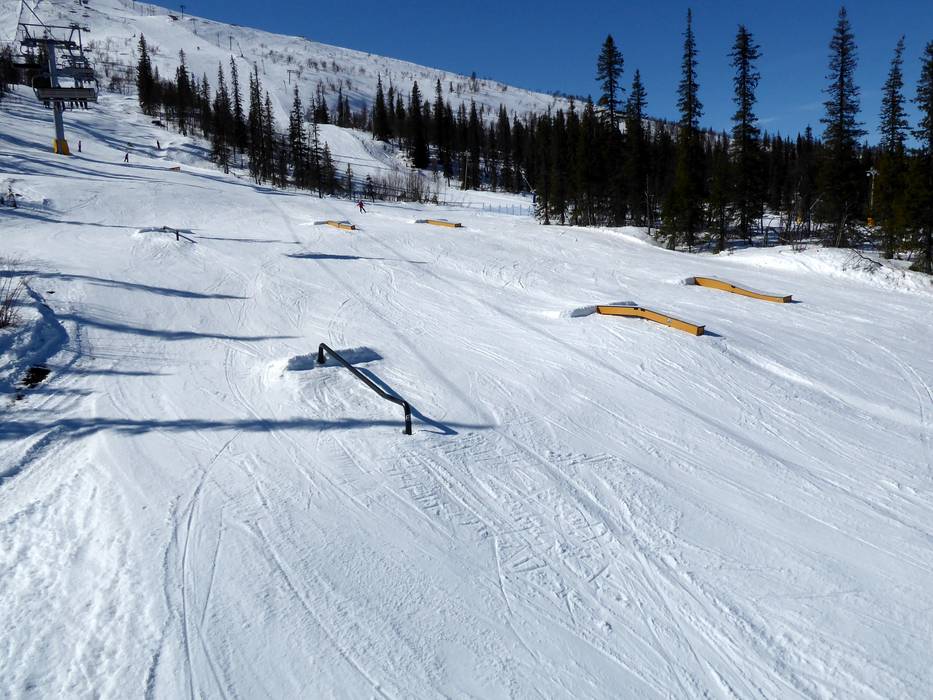 Het skigebied Dundret Lapland biedt een eersteklas snowpark in het dalgebied bij de zespersoonsstoeltjeslift.
