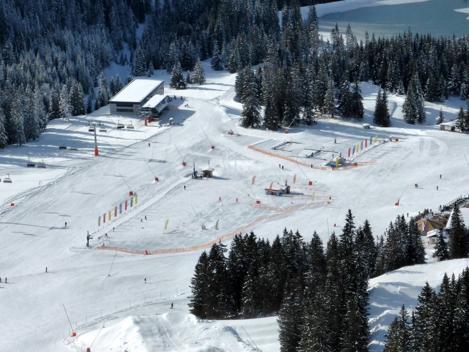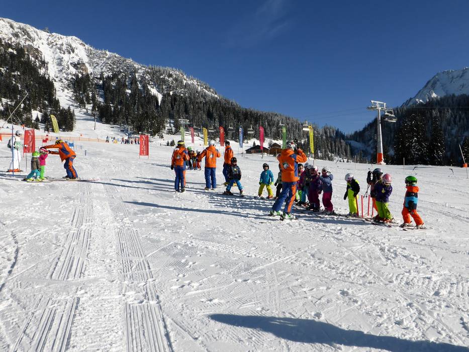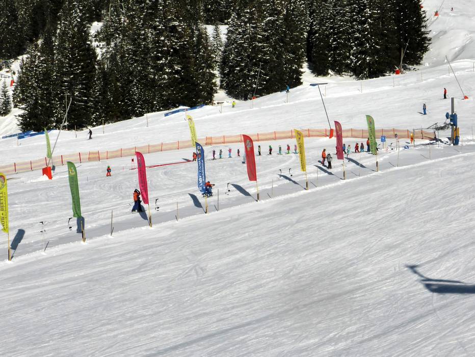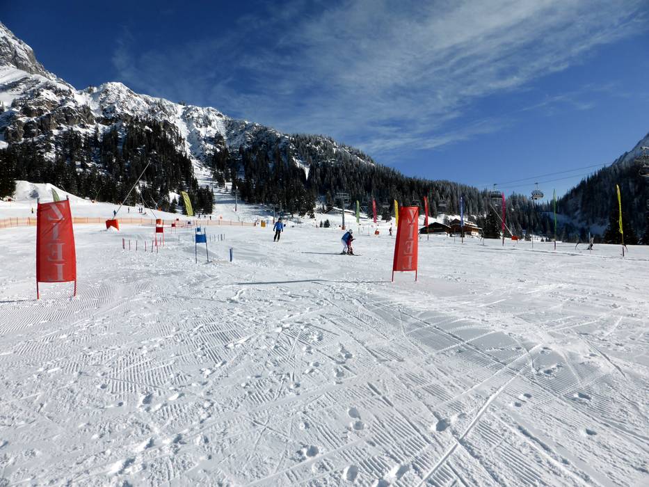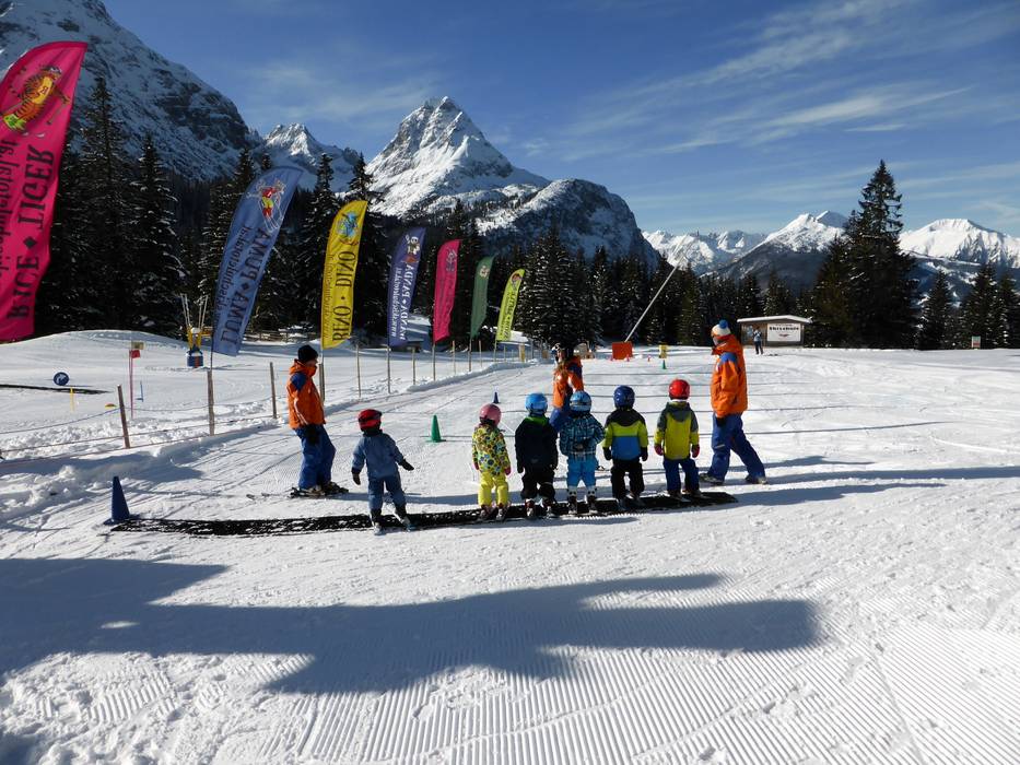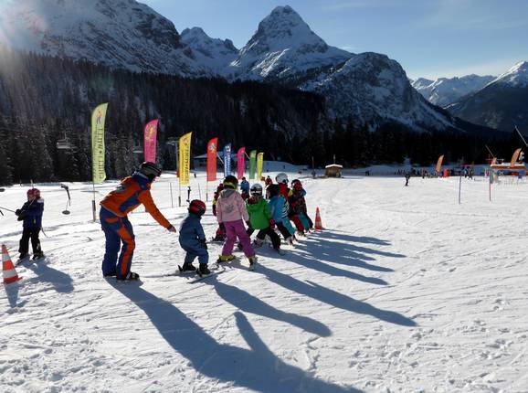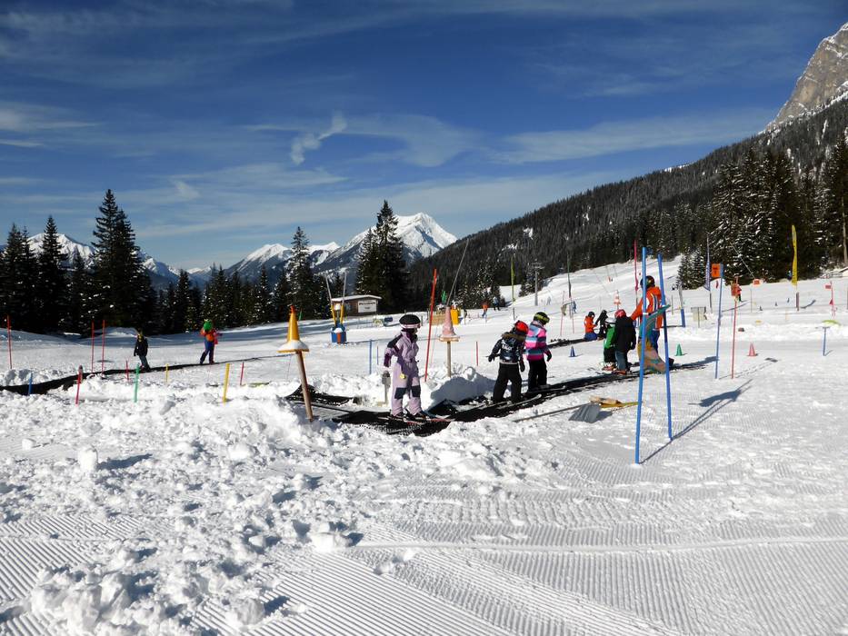 Eigen gebied met sleeplift op de Ehrwalder Alm. Hier kunnen ouders ook als niet-skiërs met de gondelbaan de berg op en hun kleintjes bij de eerste bochten toekijken.