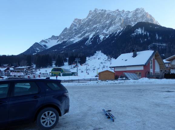 Er zijn gratis parkeerplaatsen beschikbaar bij de 6-persoons stoeltjeslift Sonnenhang Sunracer en bij de Wettersteinbahn. Voor beginners en gezinnen raden wij het begin bij de Sonnenhang Sunracer aan.