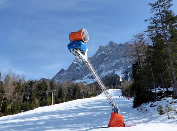 De Wettersteinbahnen Ehrwald kunnen bijna volledig kunstmatig worden besneeuwd. Hierdoor is betrouwbaar skiën mogelijk, zelfs dankzij de zonnige ligging.
