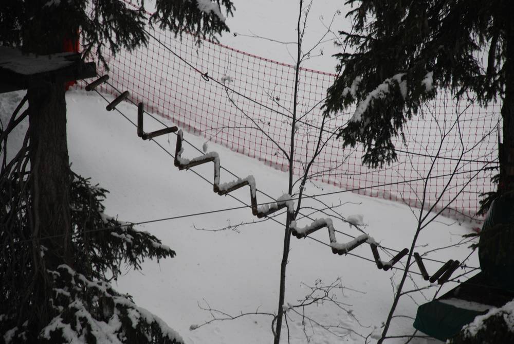 Het avonturenparcours in de kloof van Nant Rouge (tussen Les Saisies en Crest Voland), dat ook in de winter geopend is, biedt hangbruggen, tokkelbanen, via ferrata en elementen van een touwenparcours in het bos.