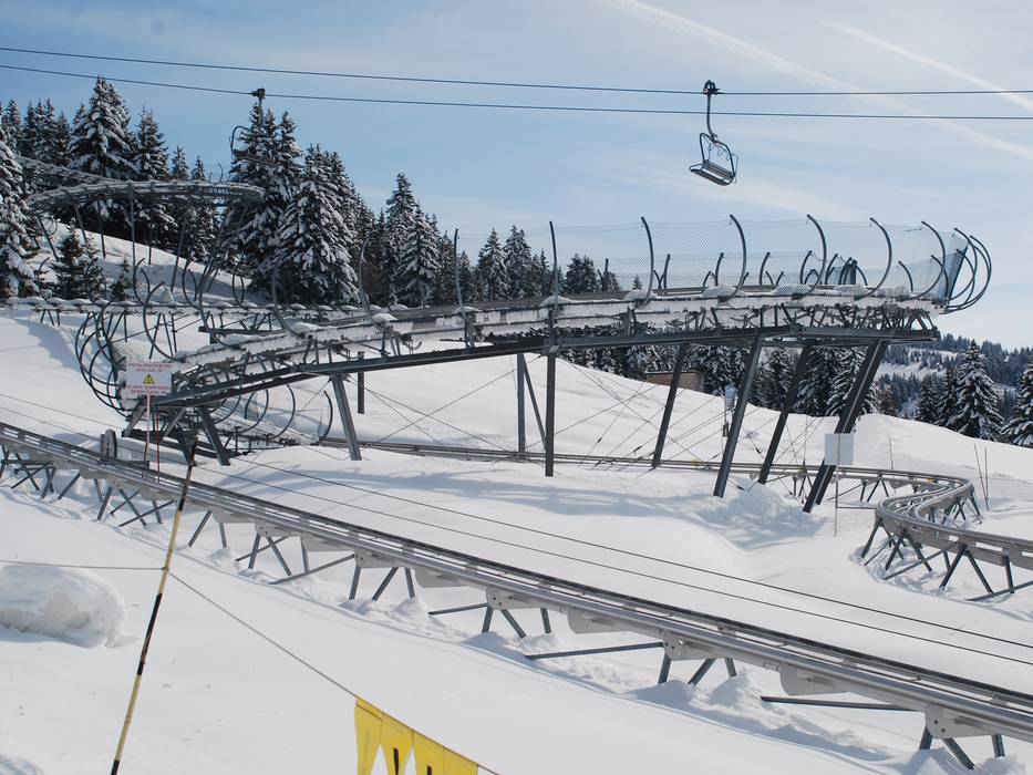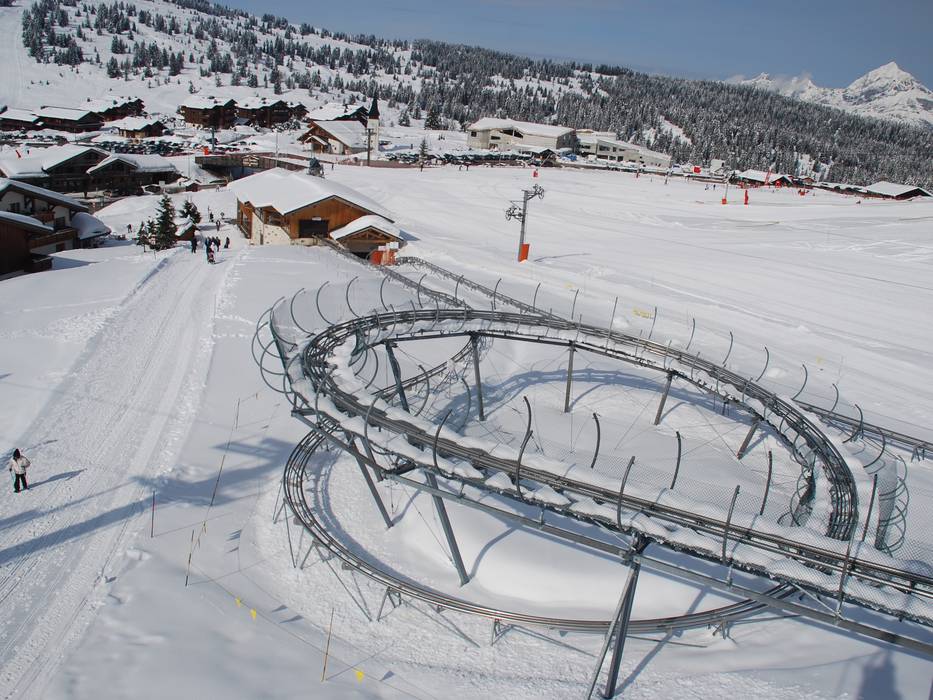 De 750 meter lange Alpine Coaster aan de rand van Les Saisies is ook in de winter in bedrijf en erg populair bij kinderen. Je kunt alleen of samen met een volwassene in de tweezits slee met snelheden tot 40 km/u door meerdere bochten naar beneden suizen.