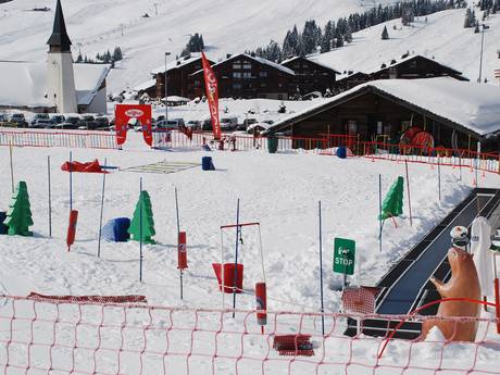 Funpistes met speelse en educatieve elementen voor zes- tot twaalfjarigen, te vinden in Crest Voland (Piste Tovats) en Praz sur Arly (sleepjesliften Baby 1 en 2)