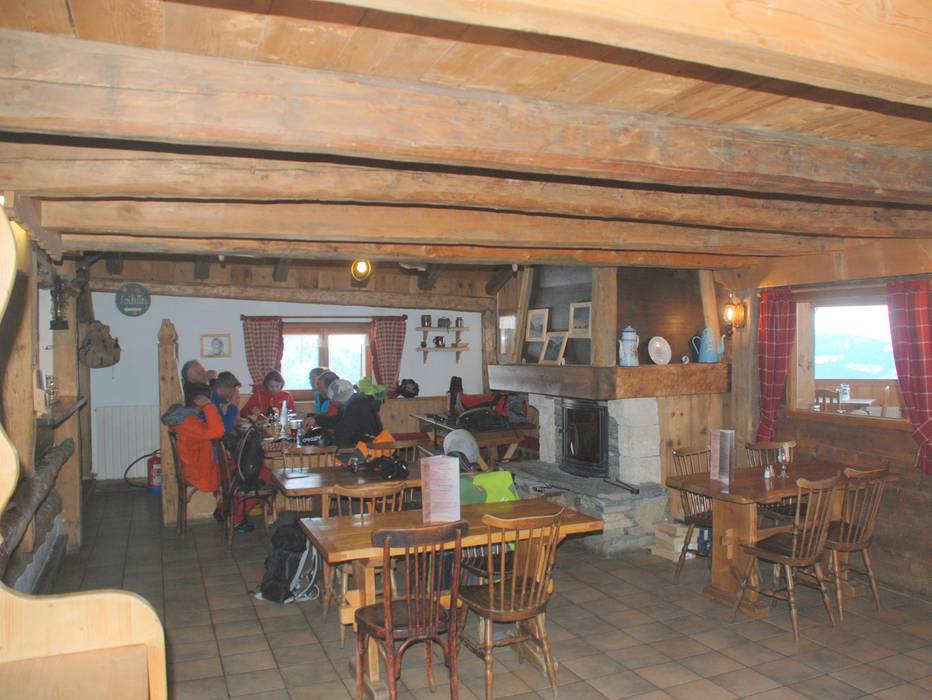 Naast een uitstekend driegangenmenu met telkens twee keuzemogelijkheden en een voordelige plat du jour (daggerecht) worden in de gezellige hut specialiteiten geserveerd zoals kaasfondue (Fondue Savoyarde) en daarnaast soepen, salades, kaas en een kleine selectie vleesgerechten. Vanaf het terras kun je genieten van het uitzicht op de Montblanc.
