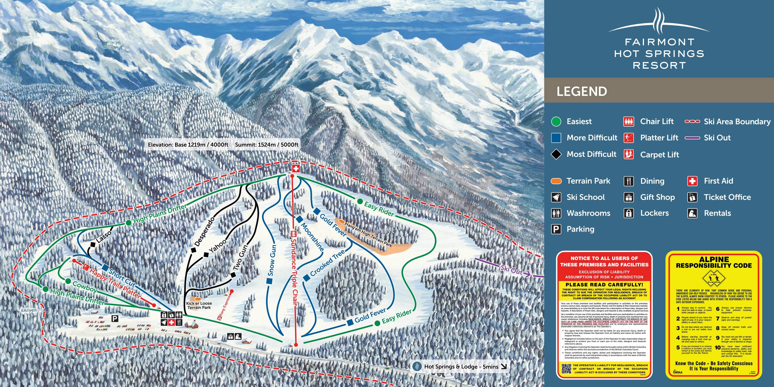 Pistekaart Fairmont Hot Springs seizoen 2024/2025