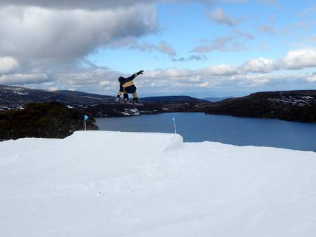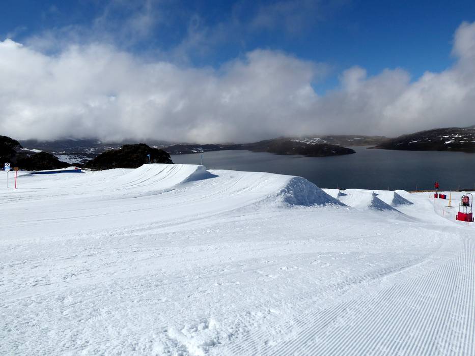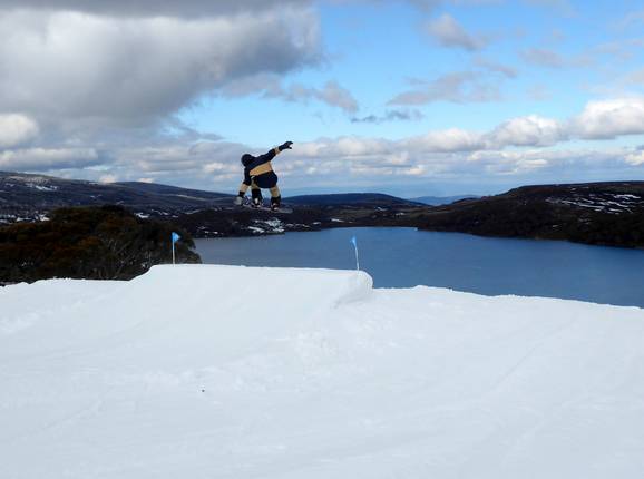Het skigebied Falls Creek biedt een reeks eersteklas snowparks. De afzonderlijke parken bieden een prachtig uitzicht op het Rocky Valley Lake.