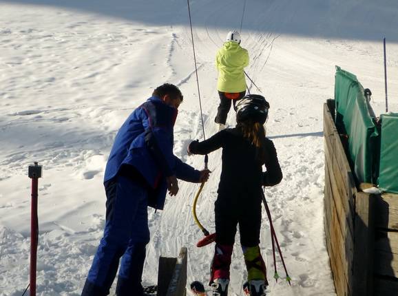 Je wordt zeer vriendelijk ontvangen in het skigebied, zowel in de berghut als bij het dal- en bergstation van de sleeplift. Het personeel staat behulpzaam bij het dalstation om skiërs en snowboarders te helpen bij het instappen.