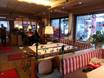 Het grote zelfbedieningsrestaurant biedt een prachtig uitzicht.