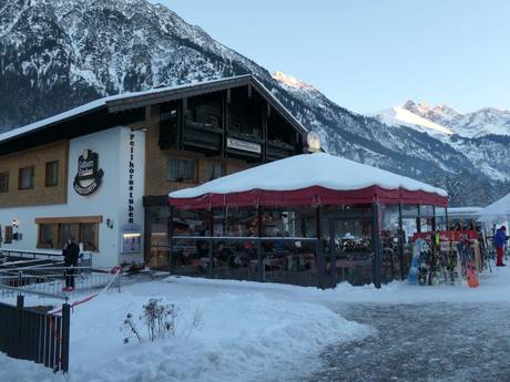 Pauzeren in Oostenrijk of Duitsland – in het grensoverschrijdende skigebied heb je de keuze. Met de Obere Alpe Bierenwang, de Schwendhütte (s’ Urbar) en de Adlerhorst verwennen authentieke berghutten je. Bij de middel- en bergstations zijn er grote zelfbedieningsrestaurants met ruime zonneterrassen. Bij het dalstation van de Fellhornbahn wachten eetgelegenheden.