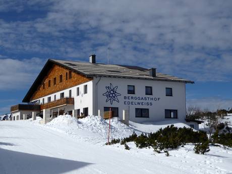 De berghut Edelweiss biedt een verfijnde, internationale keuken. De chef-kok staat zelf nog in de keuken en er wordt met de beste ingrediënten vers gekookt. Een ruime keuze aan wijnen maakt het aanbod compleet. In de nieuw gerenoveerde stube of op het grote zonneterras kun je van de uitstekende keuken genieten.