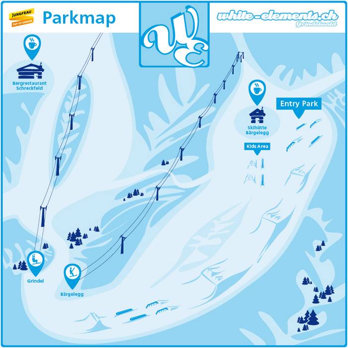 Het White Elements Snowpark is aangepast aan het terrein en vanaf beneden gezien iets naar rechts verschoven. In het eerste (bovenste) gedeelte vind je nu twee tot drie rails of boxen, gevolgd door 3-4 kickers en tot slot nog enkele rails of boxen. Meer informatie op www.jungfrau.ch/white-elements.Persoonlijk vakantiealbum