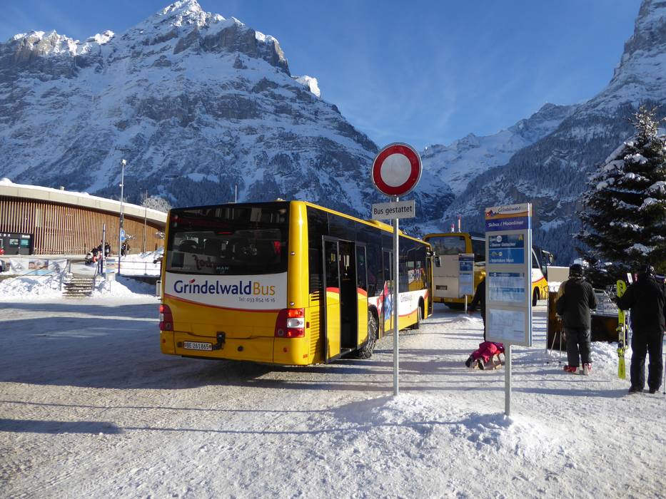 - Postauto's en skibussen rijden in Grindelwald elke 15 minuten. De Berner Oberland-Bahn (BOB) verbindt Grindelwald met Interlaken Ost.