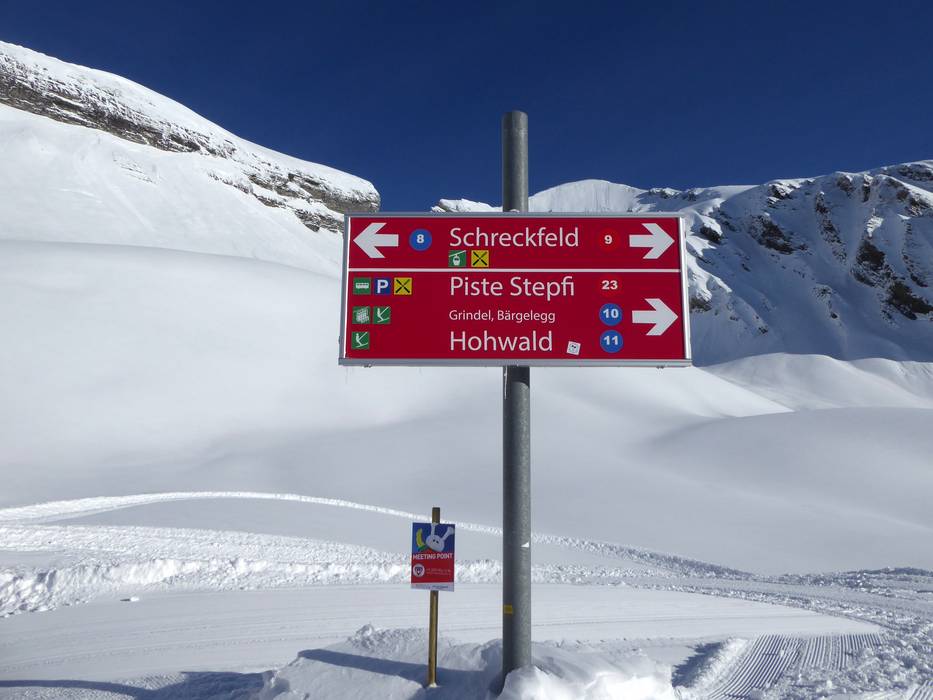 Oriëntatie (pistekaart, informatieborden, bewegwijzering piste) en veiligheid in het skigebied First – Grindelwald