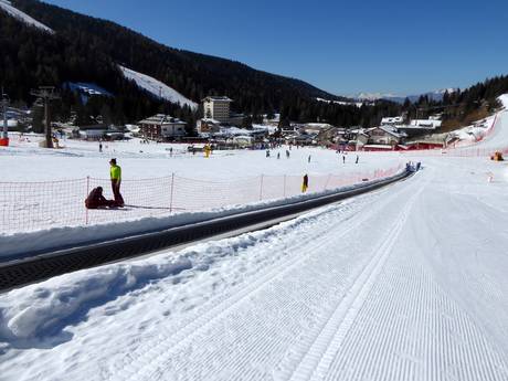 Bij de Passo Coe wacht een kinderpiste met een overdekte transportband. Hier oefenen de skischolen samen met de kinderen de eerste bochten. Daarnaast is er de kinderopvang "Casa di Smile".