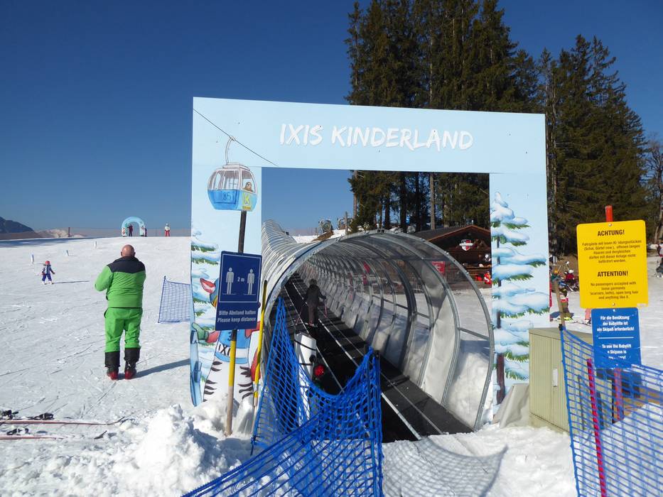 In het Kinderland bij de Hausberg zijn diverse leermaterialen en een ideale helling beschikbaar. Een "tribune" voor de ouders zorgt voor perfecte omstandigheden voor de jonge wintersporters.