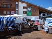 Strandkorven op 1435 m – de nabijgelegen zee laat van zich horen. De Schirmbar bij het bergstation beschikt over een groot terras met verschillende soorten zitmeubilair, een prachtig uitzicht en een zeer relaxte sfeer.