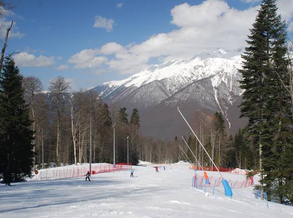 Het Gazprom Mountain Resort biedt uitsluitend bosafdalingen, maar deze variëren van makkelijk tot moeilijk.