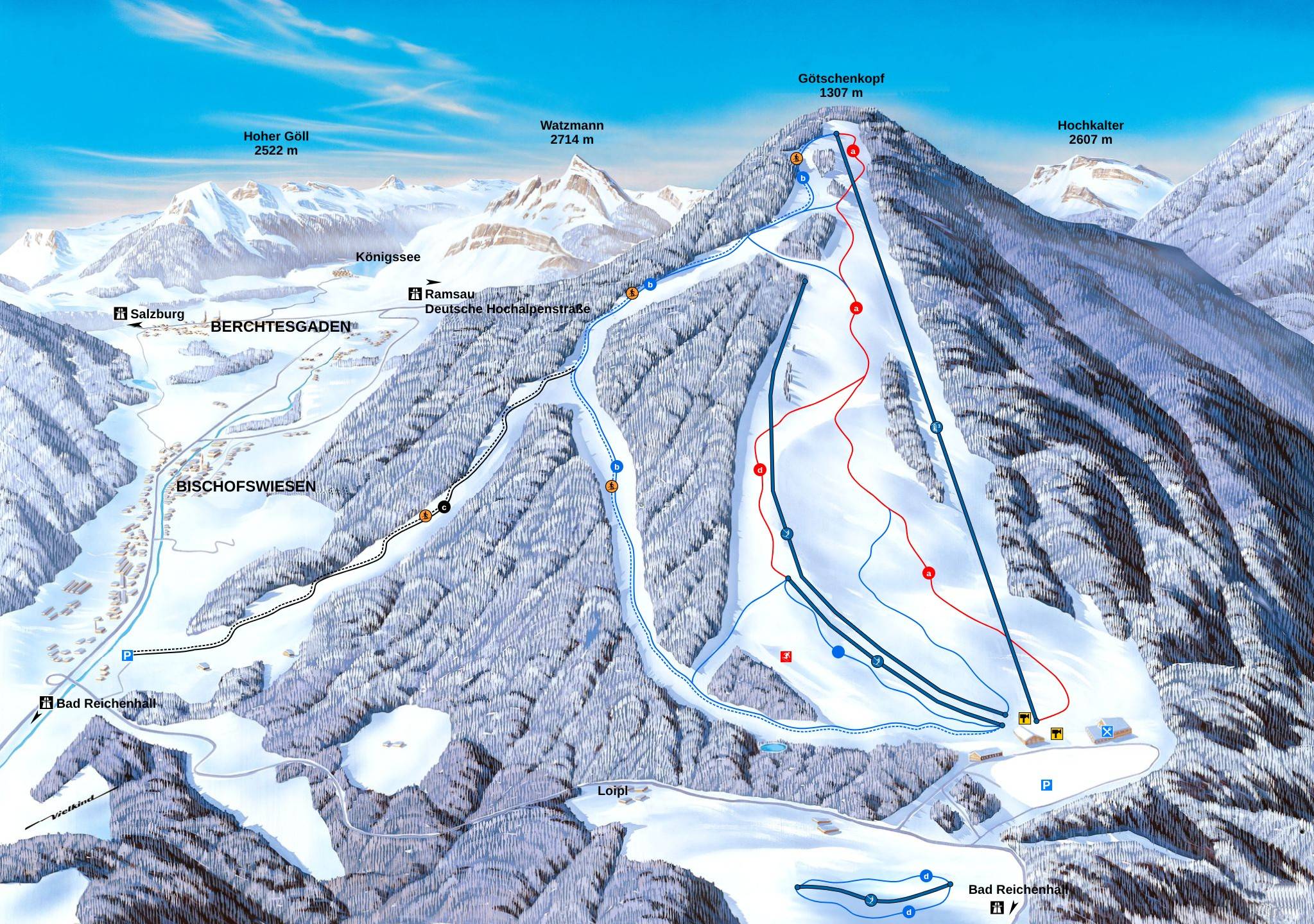 Bischofswiesen (3,3 km), Loipl (0,8 km), Berchtesgaden (9 km) Plaatsen bij het skigebied