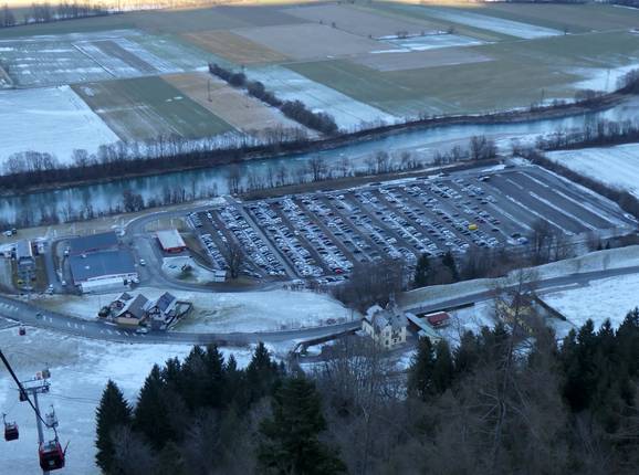 De aanreis vanaf de A10 Tauernautobahn is snel en zonder noemenswaardige stijging, omdat de gondelbaan onderaan in het Drautal begint. De grote parkeerplaats bevindt zich direct bij het dalstation.