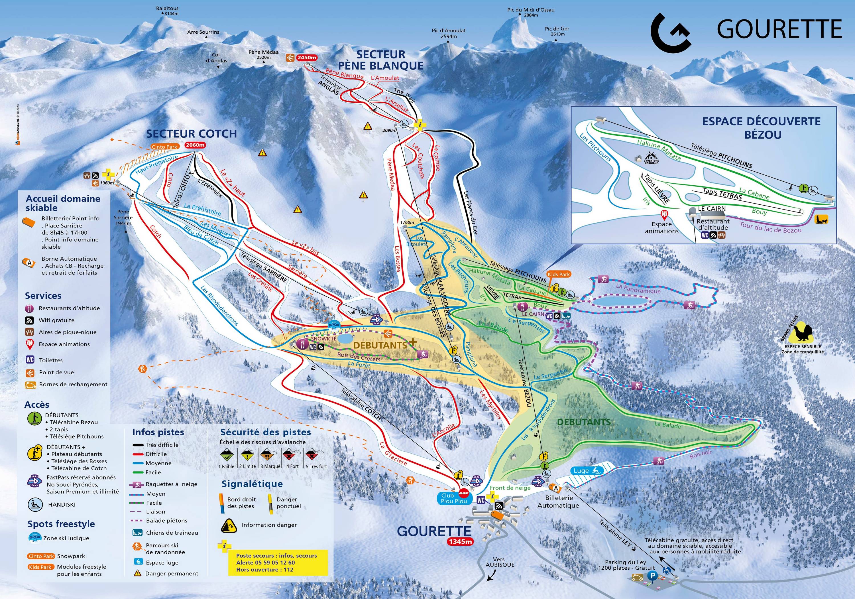 Pistekaart Gourette (Eaux Bonnes) seizoen 2025/2026
