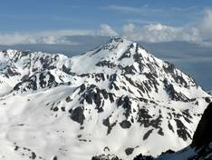 Uitzicht vanaf de pistes op de Pic du Midi 2877…