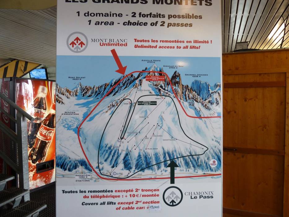 Het pisteplan van het skigebied Les Grands Montets is samen met alle andere skigebieden van Chamonix in een kleine brochure samengevat. In deze brochure vindt u voor elk skigebied aanvullende informatie. Het enige nadeel is dat de pisteplannen vrij klein zijn afgedrukt.