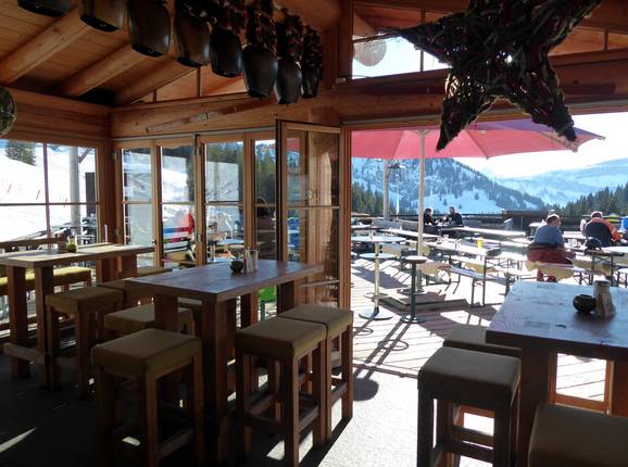 Je kunt de skidag gezellig afsluiten in de Grasgehrenhütte of op het zonneterras met een drankje.