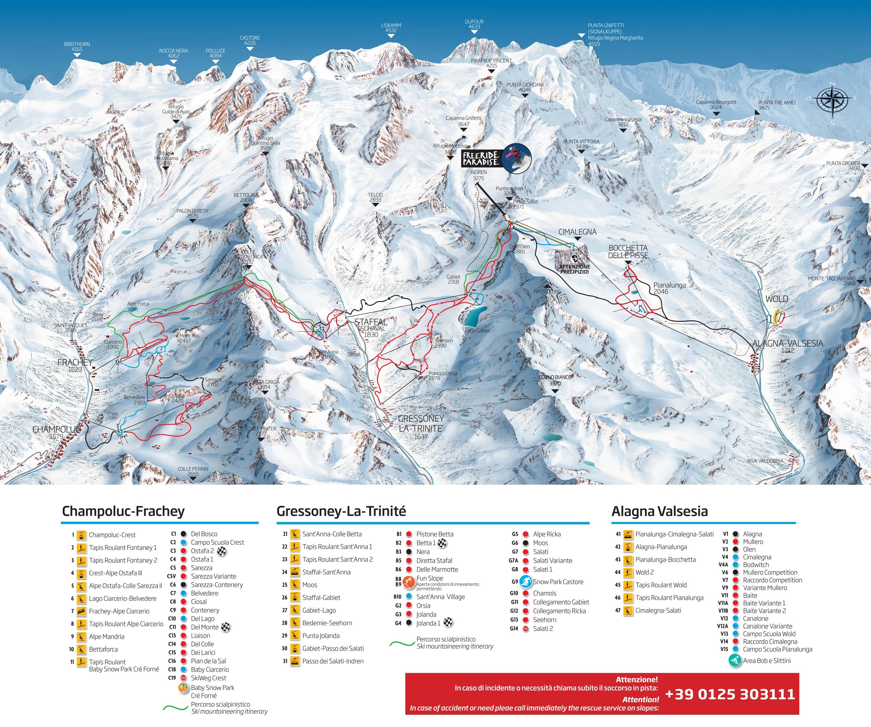 Pistekaart Monterosa Ski seizoen 2025/2026