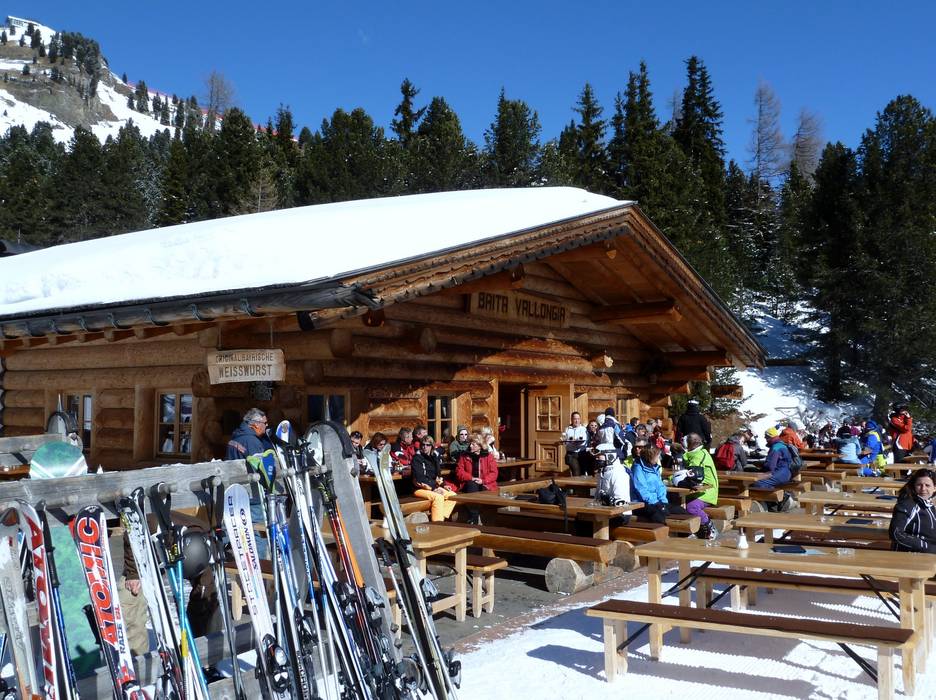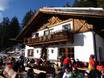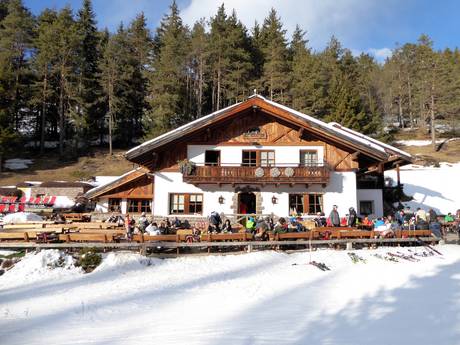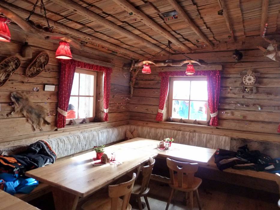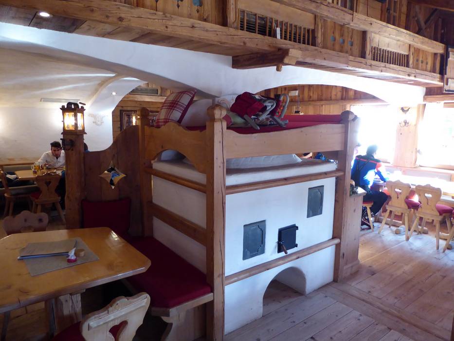 Gezellige hut met Zuid-Tiroolse specialiteiten. Het is het fijnst om de skidag ontspannen af te sluiten bij het open vuur met een drankje.
