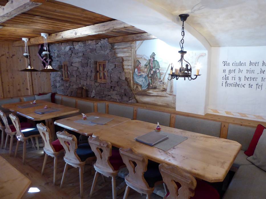 Een verfijnde selectie van bekende Zuid-Tiroolse en Italiaanse wijnen, evenals de beste grappa, fruitdistillaten, cognac en armagnac, verwennen het gehemelte van elke fijnproever. Er worden Zuid-Tiroolse specialiteiten geserveerd. Bij mooi weer nodigt het grote zonneterras uit met een prachtig uitzicht op de Langkofel.