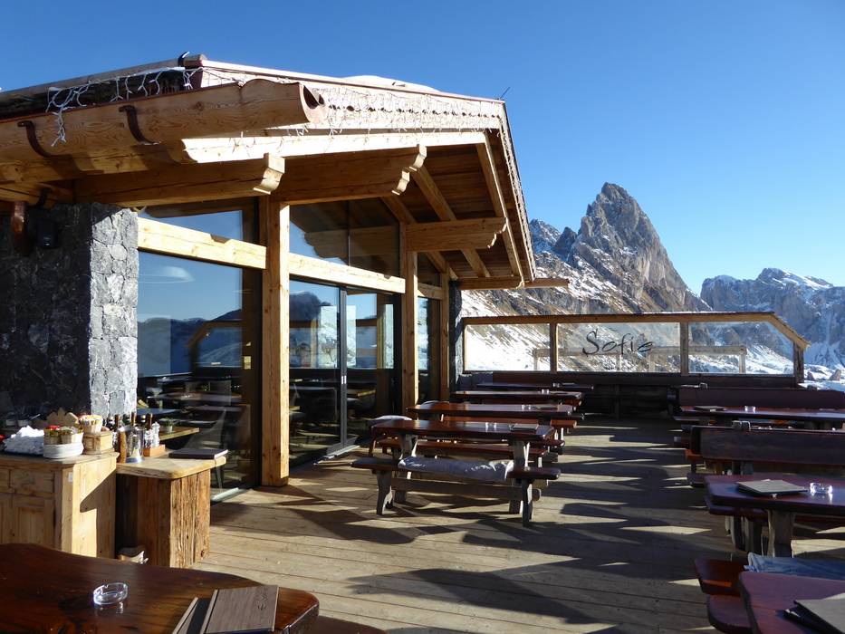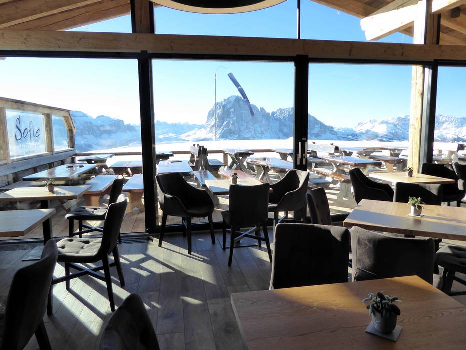 De Sofie Hütte is de hoogste hut op de Seceda en beschikt over de grootste wijnkelder met verfijnde wijnen in de Dolomieten. In de gezellige stube met grote panoramavensters en vrij uitzicht op de Langkofel kun je genieten van de beste gerechten en wijnen. Je wordt verwend met gegrilde reuzengarnalen, lamsvlees, steaks of huisgemaakte pasta met eekhoorntjesbrood. Ook Zuid-Tiroolse specialiteiten worden aangeboden. Van heerlijke voorgerechten tot verfijnde desserts kun je je smaakpapillen verwennen. De huisgemaakte gin 8025 mag je zeker niet missen. Bij mooi weer lonkt het zonneterras met uitzicht op de Langkofel. Hier blijft geen wens onvervuld!