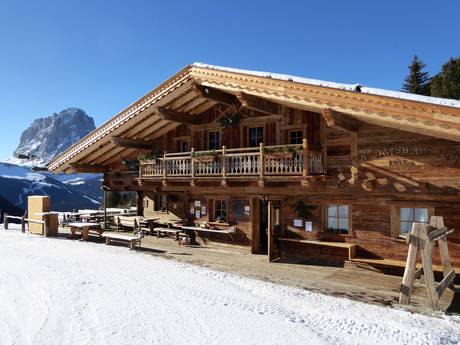 Voor het lichamelijk welzijn van de wintersporters en voor de culinaire verwennerij zorgen talloze berghutten met bediening, verspreid over het hele skigebied. Meestal worden de hutten bediend en bieden ze kwalitatief hoogwaardige gerechten. De hoogste hutdichtheid vindt men op de Seceda, de zonnige berg voor genieters boven St. Christina.