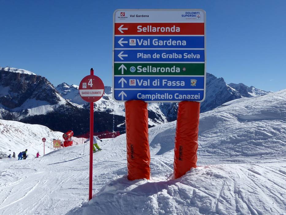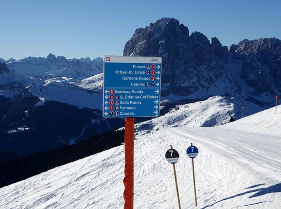 Oriëntatie (pistekaart, informatieborden, bewegwijzering piste) en veiligheid in het skigebied Gröden (Val Gardena)