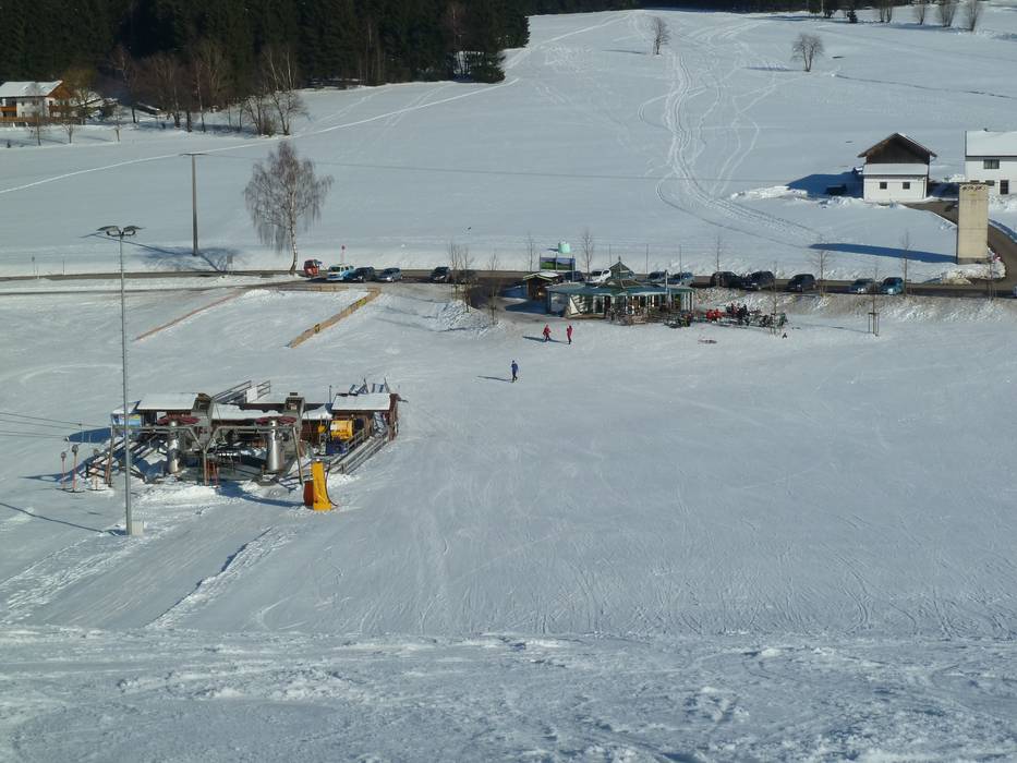 Direct naast het dalstation van de dubbele sleeplift en direct naast de winterparkeerplaatsen