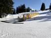 Het Kinderland bevindt zich direct bij het bergstation Schwänzelegg op 1800 meter hoogte. Het gebruik van het Kinderland is voor alle gasten en kinderen gratis. Je hoeft alleen een retourtje met de gondelbaan te kopen. In het Kinderland ontsluiten meerdere transportbanden ongeveer 10 kleine pistes. Kinderen zijn dol op de muziek-tunnelband en de grappige figuren. De twee spookbanen (een grote met einde bij de Schwendilift en een kleine in het Kinderland) laten kinderharten sneller kloppen. De kinderdraaimolen is vooral bij de allerkleinsten erg populair. Daarnaast zijn er verschillende kleine obstakels, zodat je alvast kunt oefenen voor het grote snowpark. Veel meer kan je je echt niet wensen!