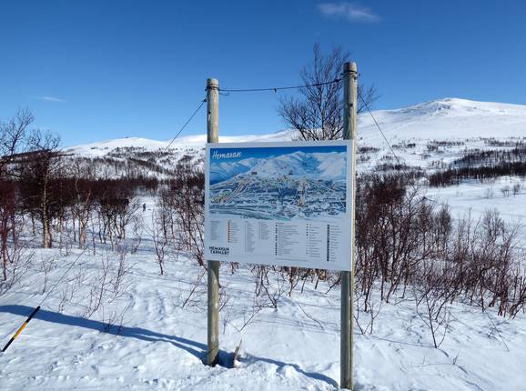 In het skigebied Hemavan zijn er bij veel berg- en dalstations grote pistekaarten. De pistes zijn allemaal duidelijk aangegeven en je kunt gemakkelijk je weg vinden. Bij sommige liften staan handgeschreven informatieborden over welke liften geopend zijn.