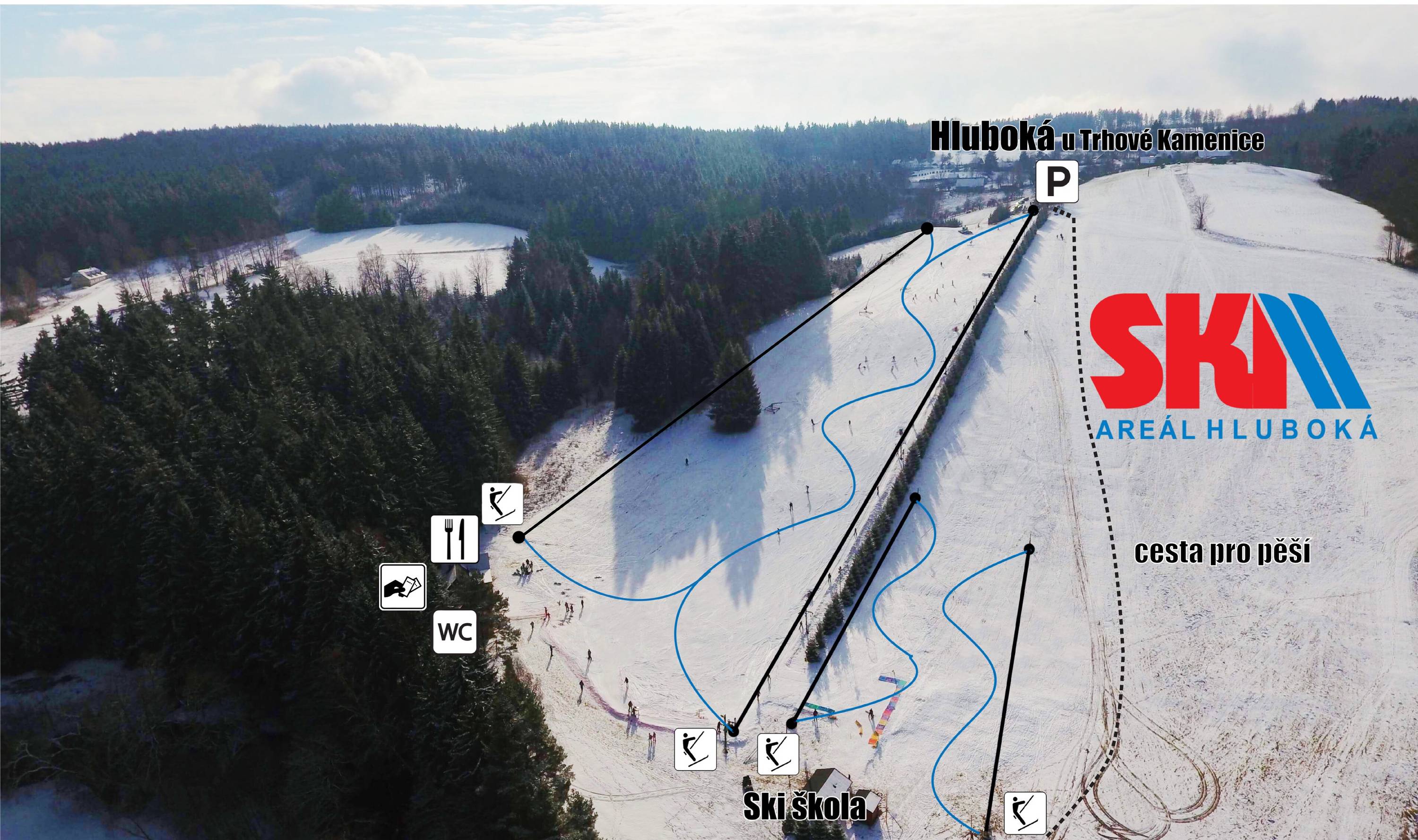 Pistekaart van het skigebied Hluboká u Trhové Kamenice