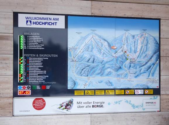 Het pisteplan geeft het complete skigebied Hochficht zeer goed weer. Alle pistes, liften en andere attracties zijn ingetekend. Op de achterkant vind je prijzen en nieuwigheden voor de winter.