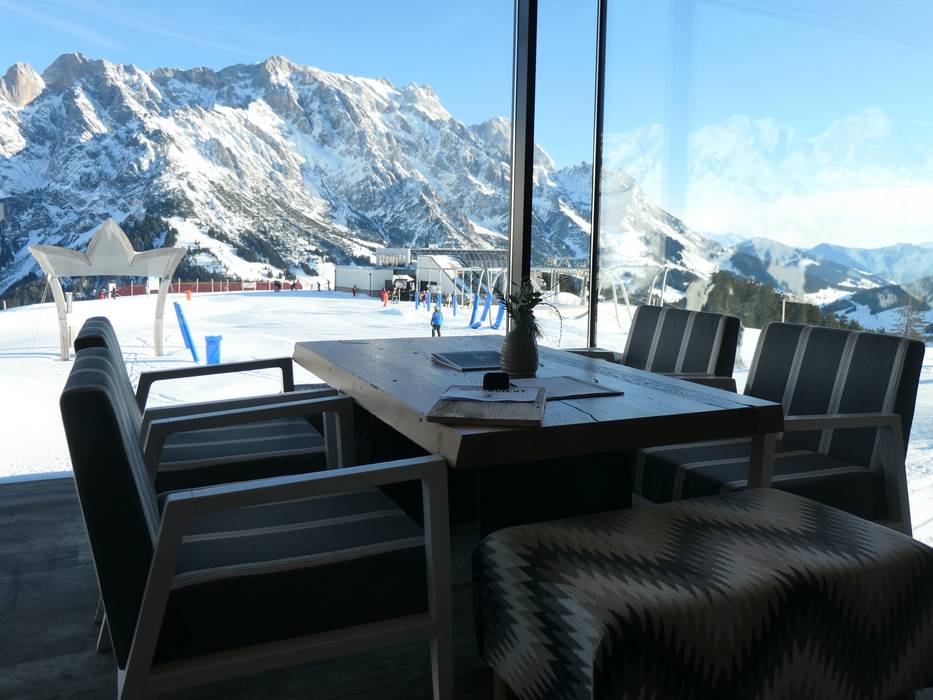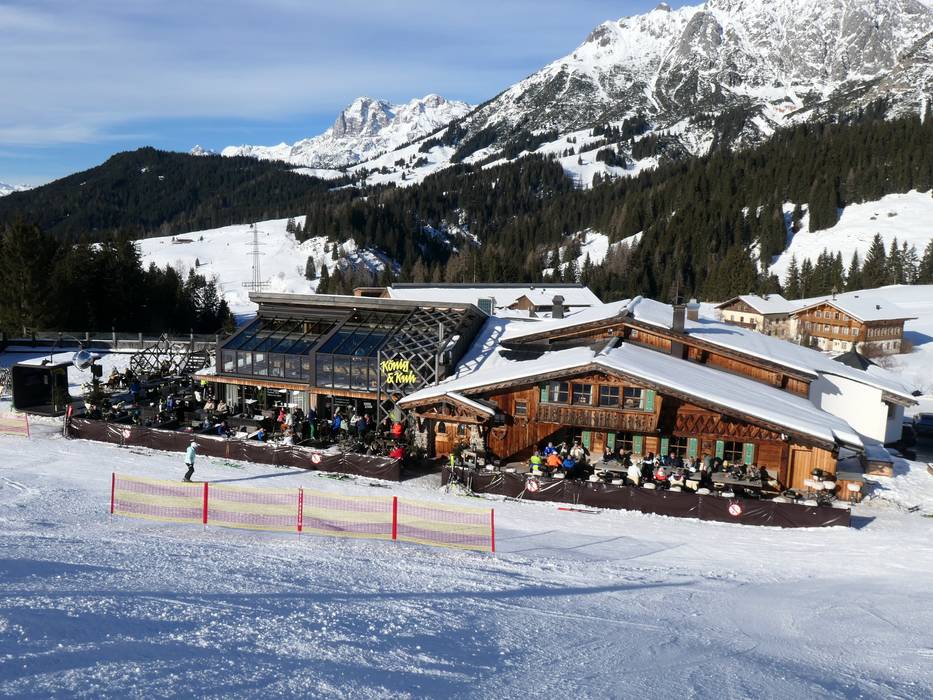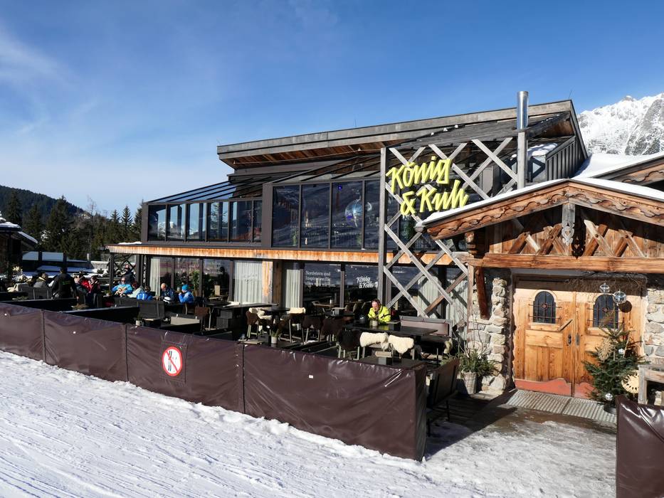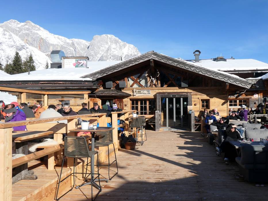 De tom Almhütte is heel bijzonder. Als mascotte dient een mopshond met de naam Choupette. Moderne architectuur met authentieke huttencharme en een spectaculair bergpanorama verrassen hier. Het menu biedt huttenklassiekers en internationale invloeden.