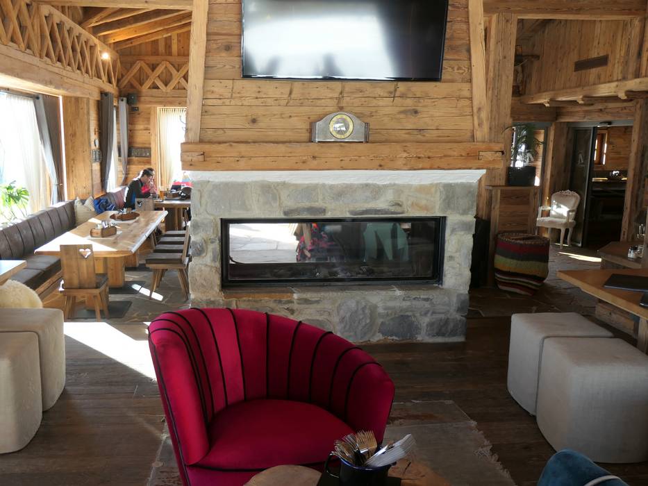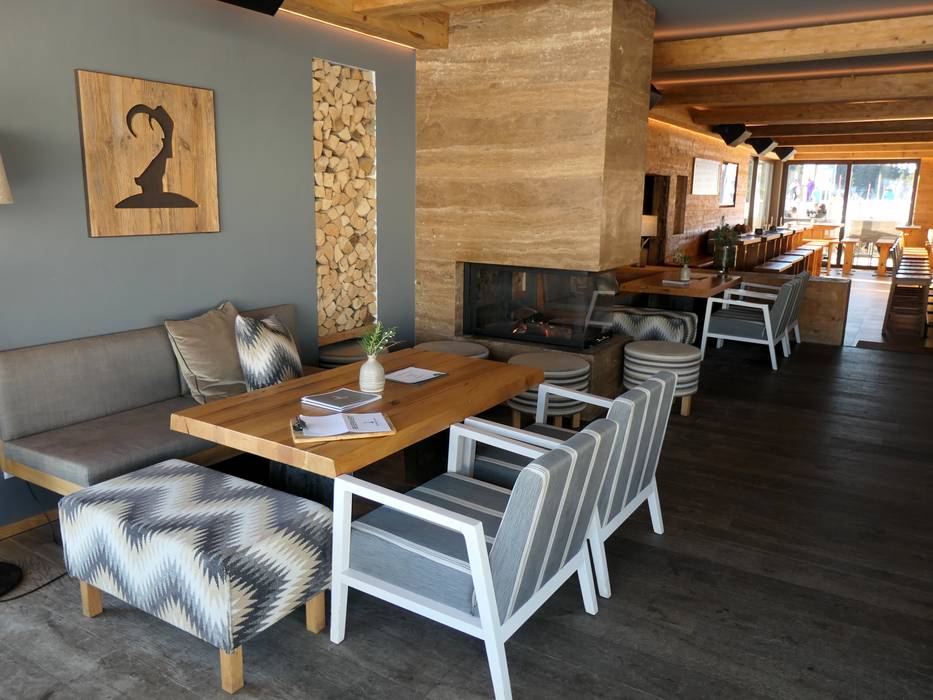 Twee gezellige, authentieke berghutten zijn met elkaar verbonden door een relaxte bar- en loungezone. Daarboven ligt het grote panoramaterras, dat de gasten een prachtig uitzicht op de bergen biedt – openluchtbioscoop voor een weids uitzicht.