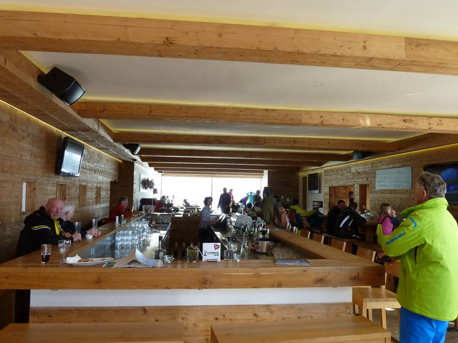 De tom Almhütte is heel bijzonder. Als mascotte dient een mopshond met de naam Choupette. Moderne architectuur met authentieke huttencharme en een spectaculair bergpanorama verrassen hier. Het menu biedt huttenklassiekers en internationale invloeden.