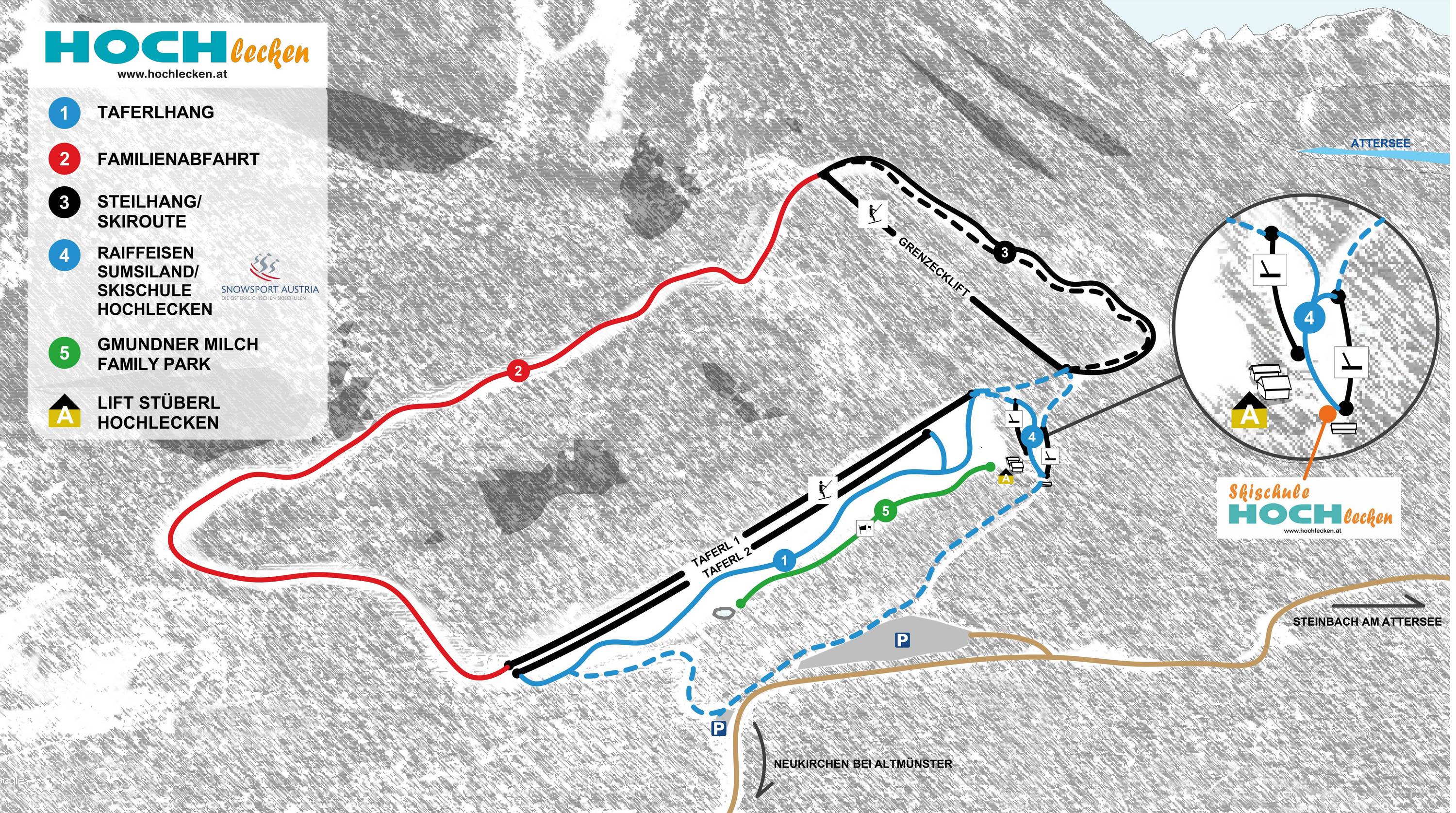 Pistekaart van het skigebied Hochlecken – Neukirchen (Altmünster)