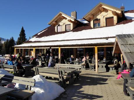 Het skigebied Hochrindl biedt gezellig après-ski. Je kunt de dag heerlijk afsluiten in de skihutten of in de Schirmbar.