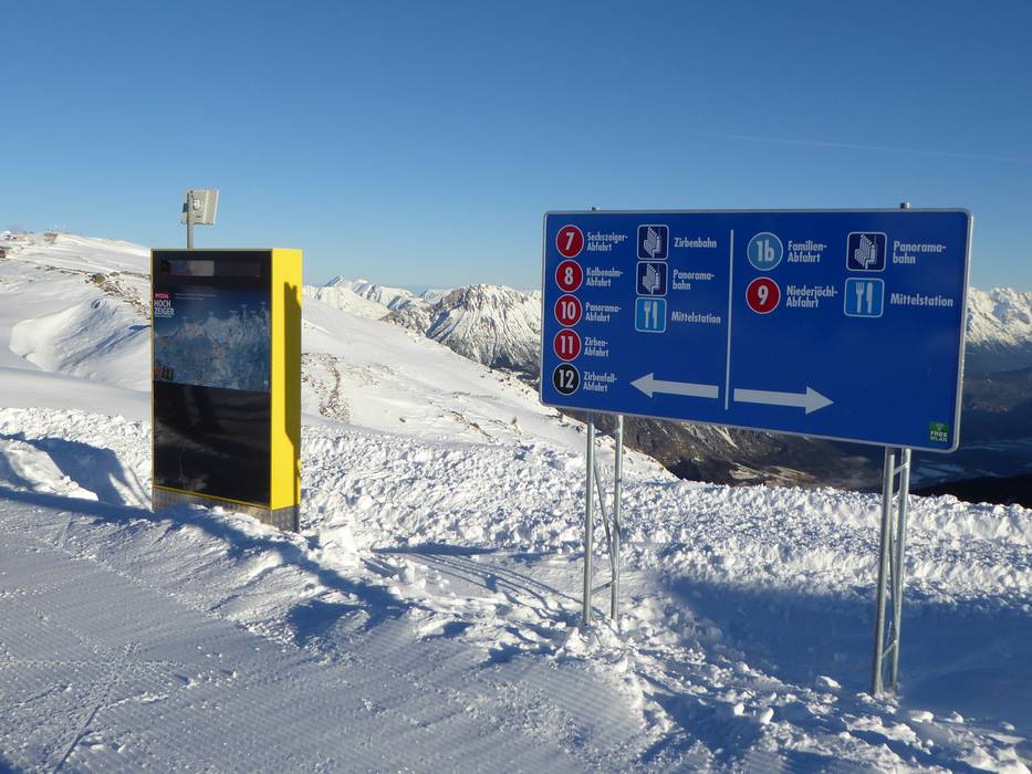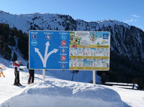 Bij de dalstations zijn veel informatieborden over het skibedrijf te vinden. De bewegwijzering in het skigebied is optimaal. Duidelijke en eenvoudig te begrijpen wegwijzers maken de oriëntatie gemakkelijk. Informatieborden met pistekaarten zijn op veel plaatsen aangebracht. De pistes zijn duidelijk gemarkeerd. Vooral positief is dat de pisteregels op veel plekken worden uitgelegd. Op een speciaal pisteregels-pad worden de regels met duidelijke borden uitgelegd. De mascotte Pitzi is actief betrokken, zodat ook kinderen spelenderwijs de regels leren. Op centrale punten worden de regels bovendien met striptekeningen weergegeven. Het skigebied is bekroond met het pistekwaliteitszegel van de deelstaat Tirol.