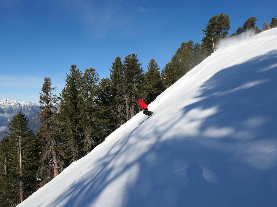 De zwarte piste is vernoemd naar de skister Benni Raich. Hochzeiger was het thuis- en trainingsskigebied. - Zirbenfall-afdaling