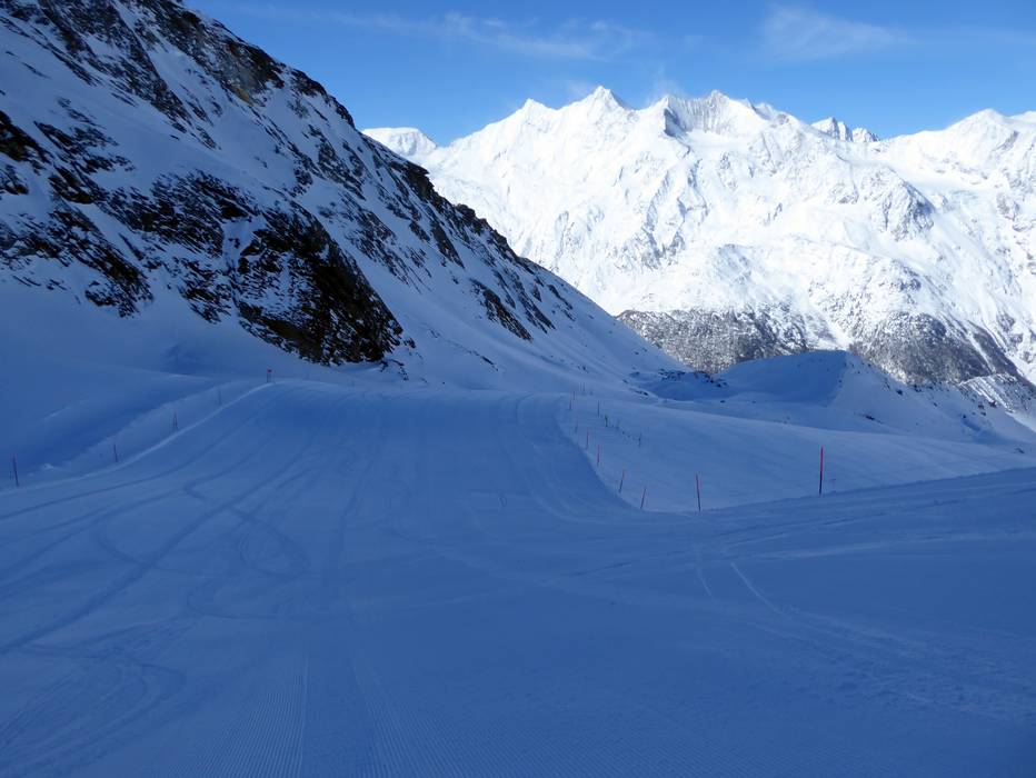 Een skiroute bevindt zich op de gletsjer en een andere skiroute leidt naar Saas-Balen.