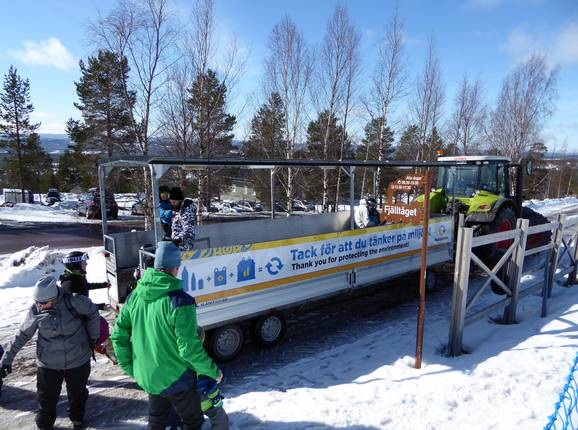 - In het vakantiepark Idre Fjäll rijdt een tractor met aanhanger rond. Alle vakantiehuizen zijn echter ook binnen enkele minuten te voet bereikbaar.