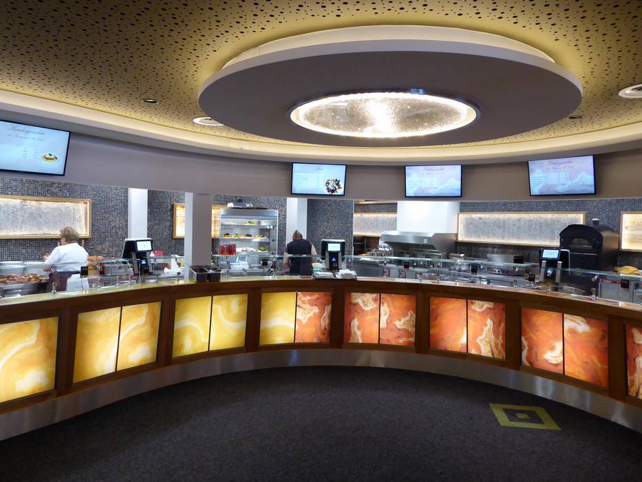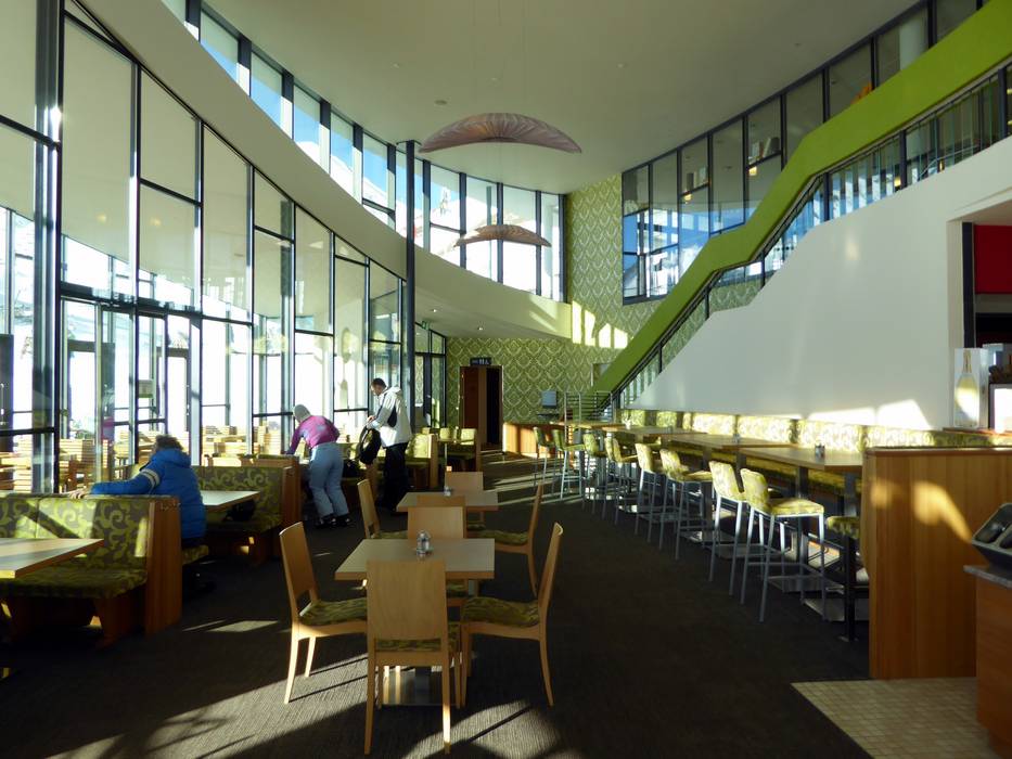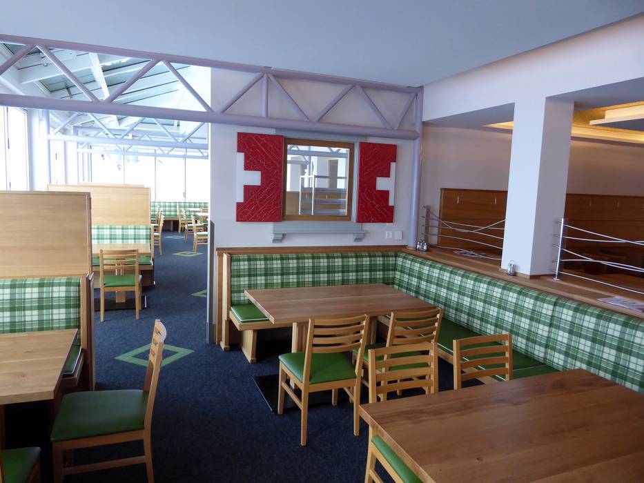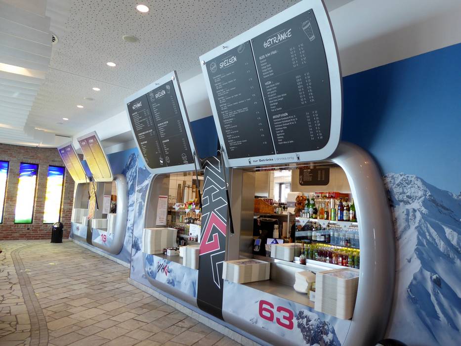 Het restaurant Salaas biedt op de bovenverdieping een bediend gedeelte met Zwitserse specialiteiten. Er worden onder andere fondue, raclette en steaks aangeboden. Soepen, salades en pastagerechten ontbreken natuurlijk niet. Daarnaast is er nog een zelfbedieningsrestaurant met een groot zonneterras en de Skyline Bar.