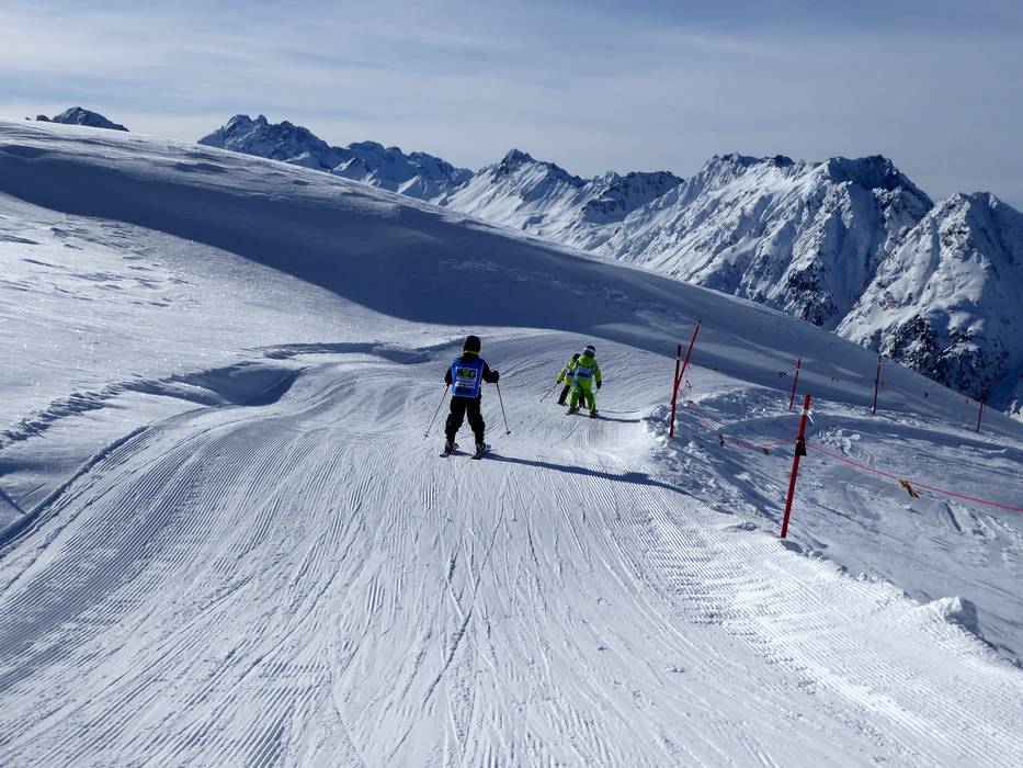 Dalafdaling naar Samnaun nr. 80 Dutyfree-Run en afdaling nr. 37 naar het middenstation in Ischgl - heel veel off-piste /Tiefschneegedeelten